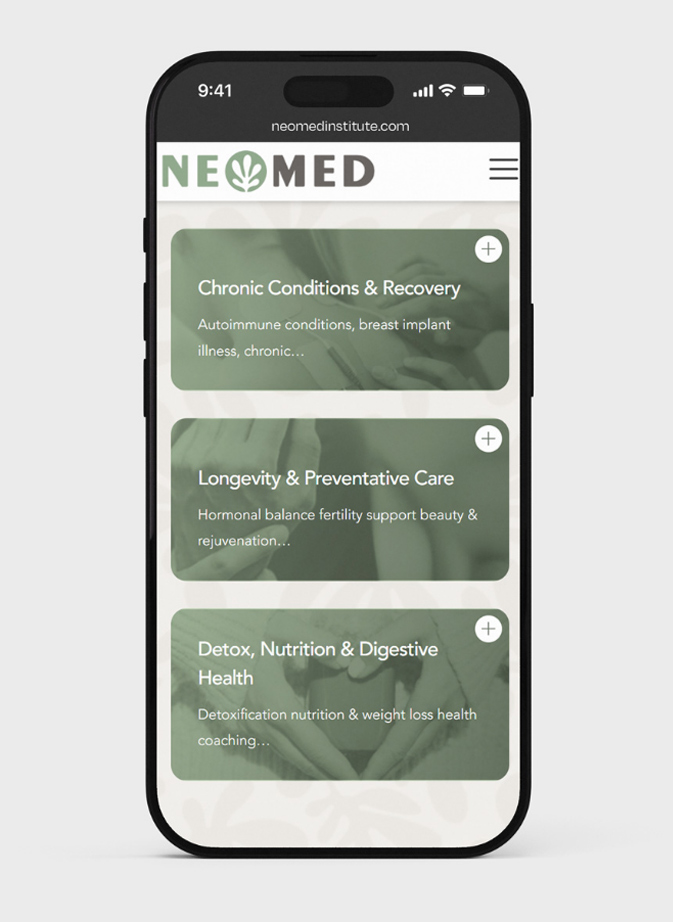 The final website presents Neomed as a world‑class integrative medical clinic with a clear, confident digital identity and highly structured content that speaks directly to both local and international patients.