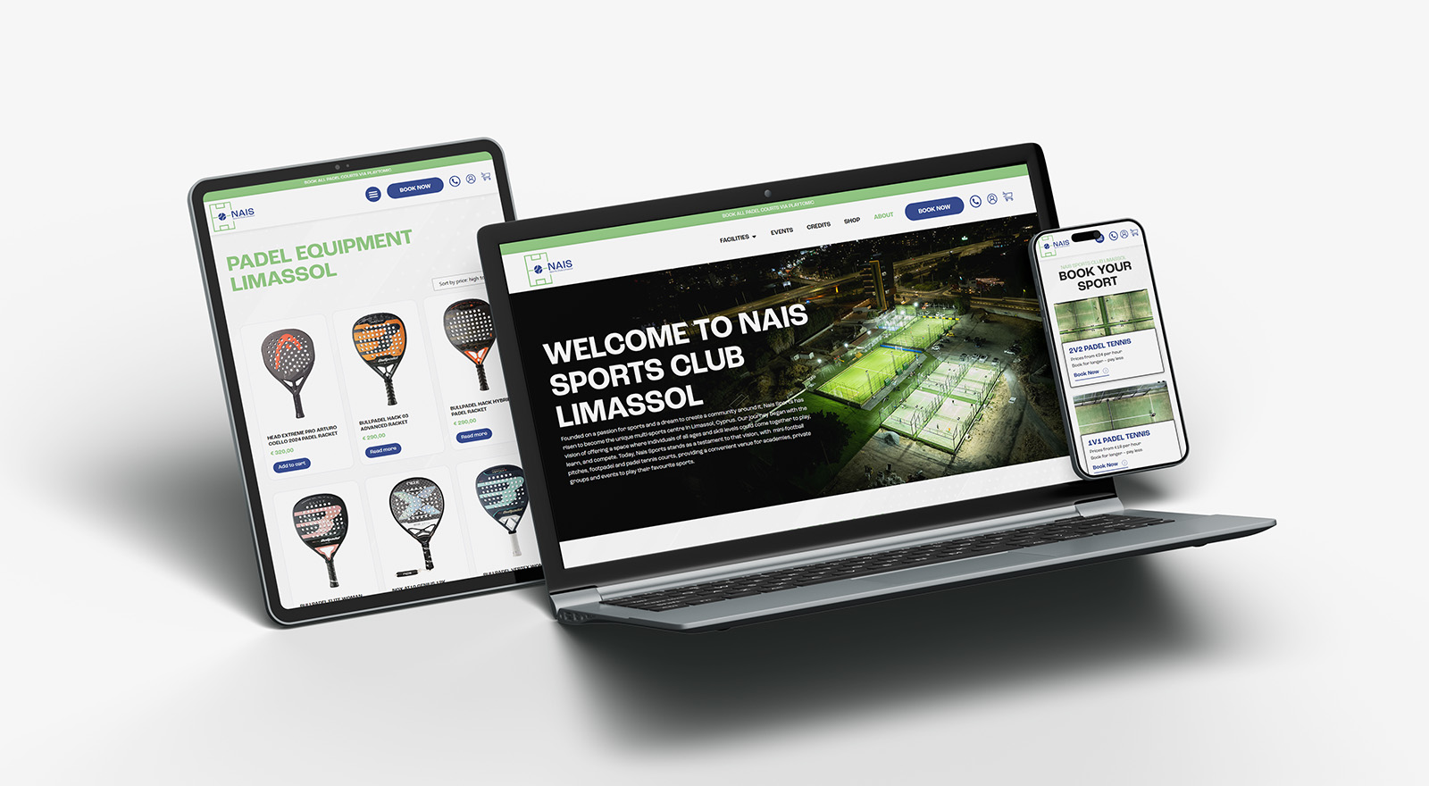 NAIS now dominate the sports club market in Cyprus, and through SEO, they are first on Google for many key terms such as 1v1 padel or 2v2 padel.